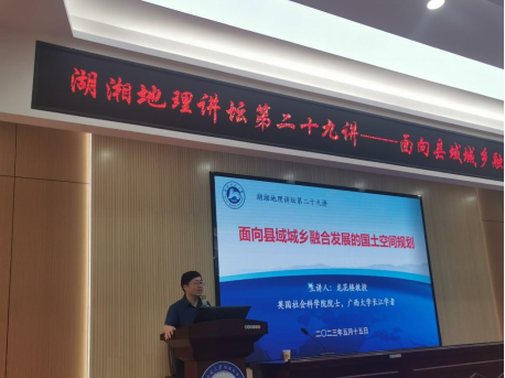 2023年5月15日下午,365官网在经纬楼301报告厅举办湖湘地理讲坛第二十九讲——面向县域城乡融合发展的国土空间规划讲座。讲座由英国社会科学院院士、广西大学教授、湖南师范大学93届校友龙花楼教授主讲,学院院长周国华教授、副院长饶志国教授等100余名师生参加了讲座。讲座由学院副院长饶志国教授主持。