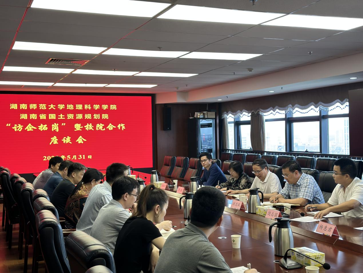 在座谈会上,湖南省国土资源规划院副院长麻战洪对学院领导、老师的到来表示欢迎,并介绍了公司的基本情况、职业发展前景以及招聘需求。周国华对湖南省国土资源规划院近年来取得的成就给予高度肯定,详细介绍了365官网的发展情况,表示以后会坚持加强教学与实践相结合,希望此次交流后双方可以拓展合作深度与广度,尤其在项目合作、信息数据的运用、学生实习等方面,进一步提升合作层次、创新合作方式,加强人才培养和实习基地建设,以共同融入和服务国家经济社会发展,实现校企合作互利共赢,推动双方事业发展再上新台阶。