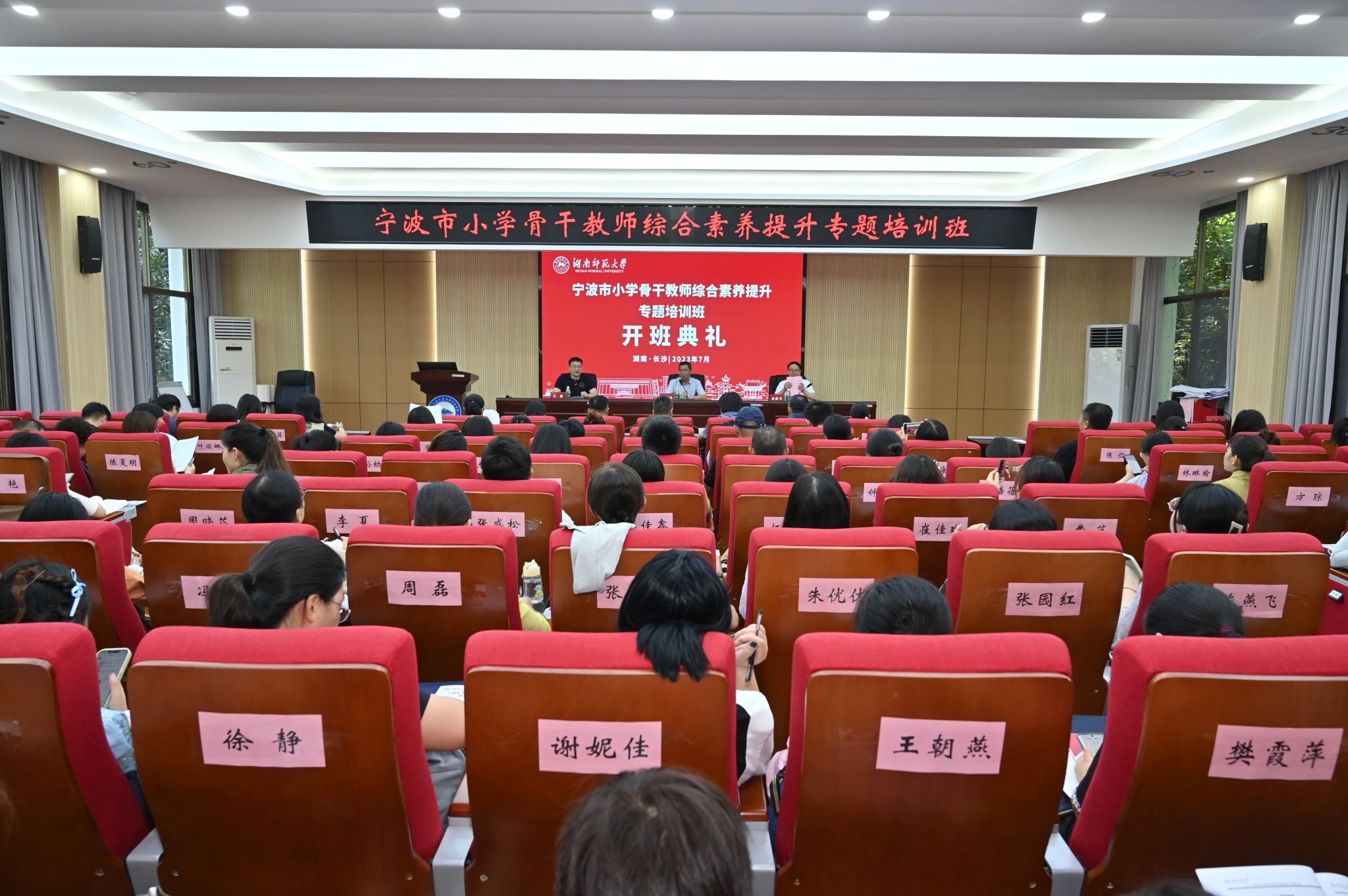7月27日,宁波市小学骨干教师综合素养提升专题培训班在365官网301报告厅举行隆重的开班典礼。浙江万里学院继续教育学院院长、支部书记杨文杰、365官网院长周国华以及来自宁波市102位小学骨干教师参加了开班典礼,典礼由365官网副院长王磊主持。