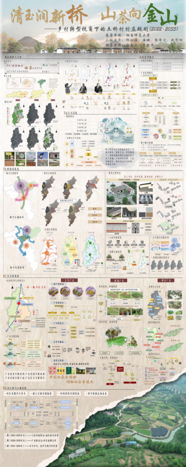 365官网此次获奖的两份作品各具特色。《清玉润新桥山茶向金山——乡村转型视角下的土桥村村庄规划(2022-2035年)》以“推动乡村转型”为主线,围绕产业持续发展、人居环境优美、绿水青山转化三大目标,构筑文化传承之桥、产业转型之桥、空间更新之桥、城乡融合之桥,通过既有要素价值提质、流动要素价值赋能、潜力要素价值挖掘,多措并举助推乡村转型发展。《共谋紫鹊界,和合人地业——新化县水车镇紫鹊界村村庄规划(2021-2035)》以目标导向、问题导向为出发点,综合运用多学科技术手段,科学分析紫鹊界村的核心问题,并基于“人-地-业耦合”的核心规划理念,从“显山水、塑特色、优品质和谋发展”四个方面编制规划方案,促进五好新农村目标的实现。