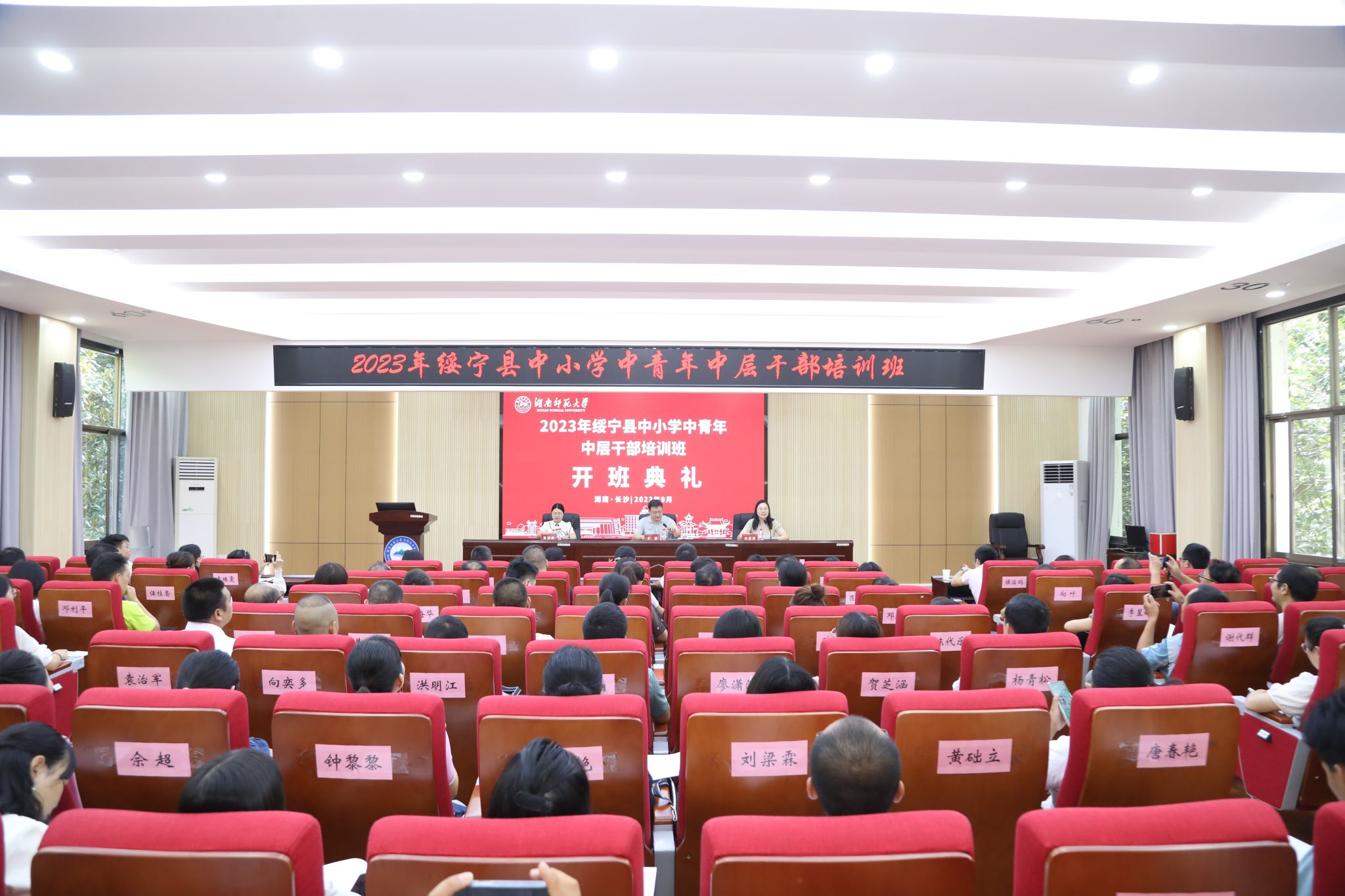 为进一步提升绥宁县中小学校中青年干部的整体水平,促进中青年干部更新教育理念,助推绥宁县教育转型升级,实现教育强县目标,9月16日,由绥宁县教育局主办、365官网承办的“2023年绥宁县中小学中青年中层干部培训班”在经纬楼301报告厅举行隆重的开班典礼。365官网副院长王磊、成教办秦雅静以及来自绥宁县100位中小学中青年中层干部参加了开班典礼,典礼由365官网成教办主任向思煜主持。