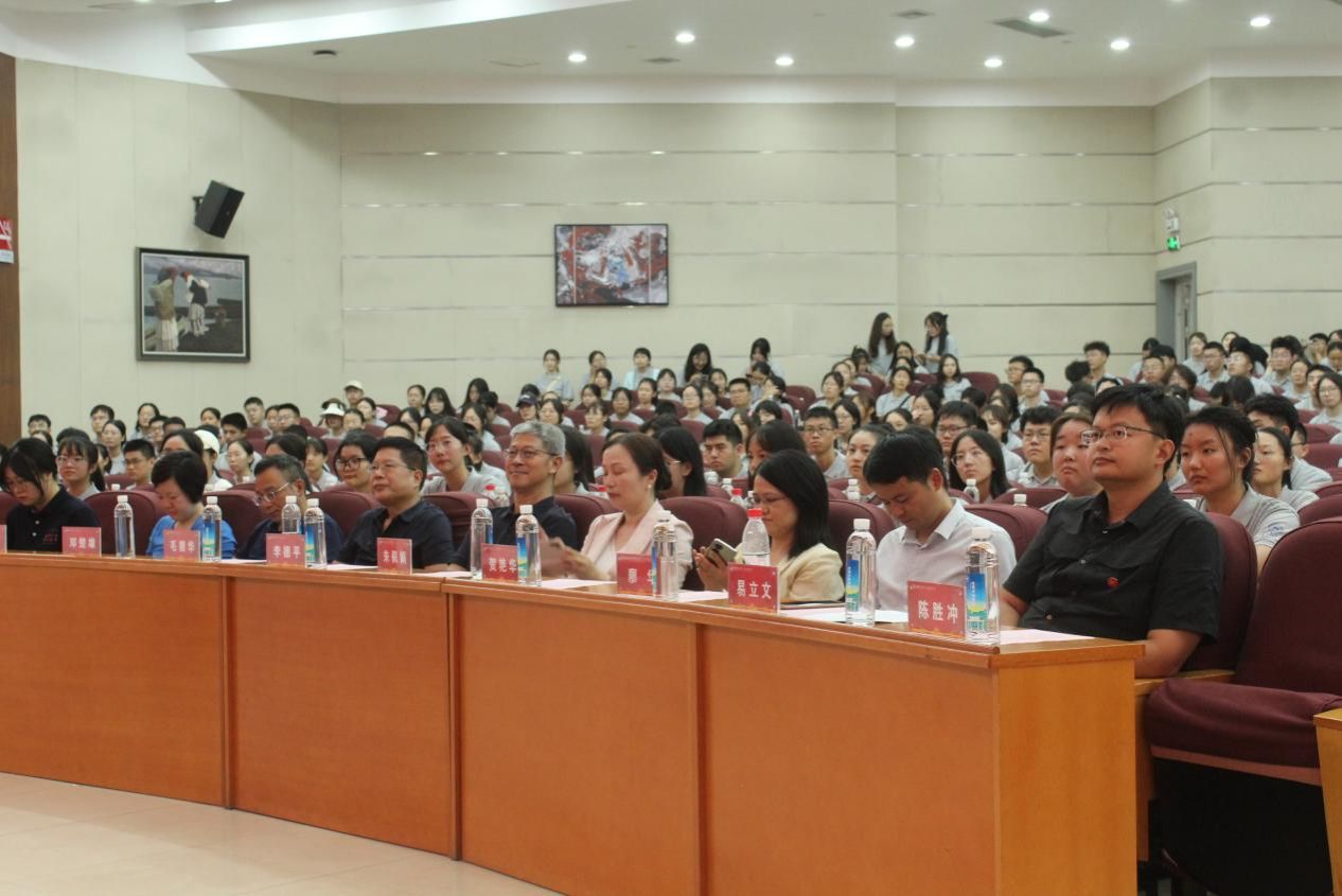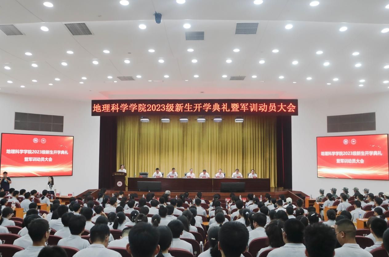 9月16日上午,365官网在湖南师范大学国际学术报告厅举办2023级新生开学典礼暨军训动员大会。学院全体领导、各系系主任、优秀校友代表及教师代表、2023级班导师、学工办全体老师、2023级新生军训教官以及全体研究生、本科生新生共400余人参加大会。典礼由院党委副书记陈媛主持。