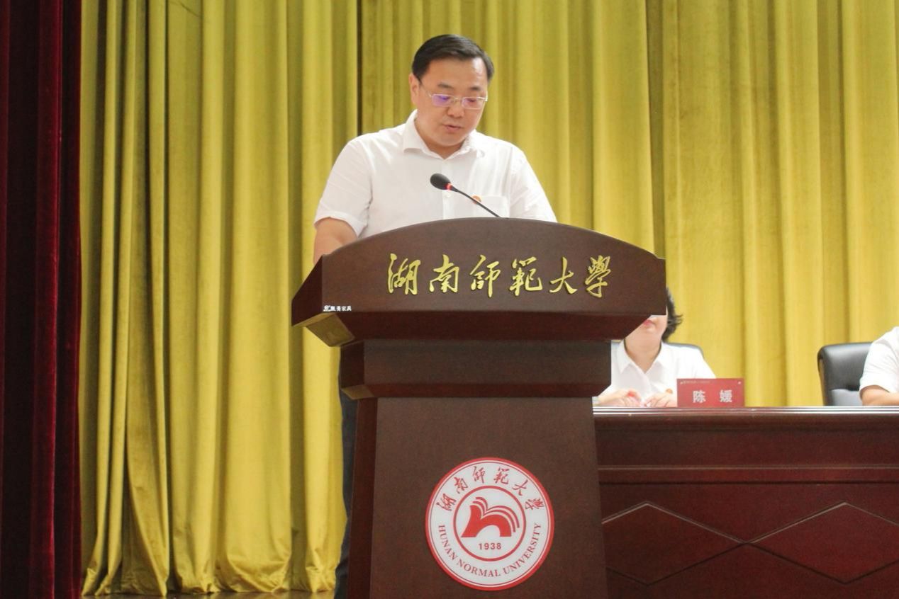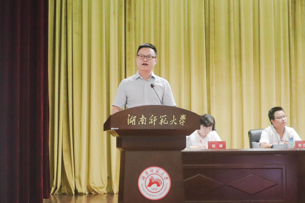 学院硕士生导师、湖南省国土空间规划学会科普工作委员会委员、中国地质学会会员、学院地学博物馆馆长、地理科学系副系主任易立文副教授代表教师发言。他希望同学们传承和弘扬“仁爱精勤”的校训精神,争做标杆,追求卓越,在湖南师范大学书写人生最美丽的青春篇章。