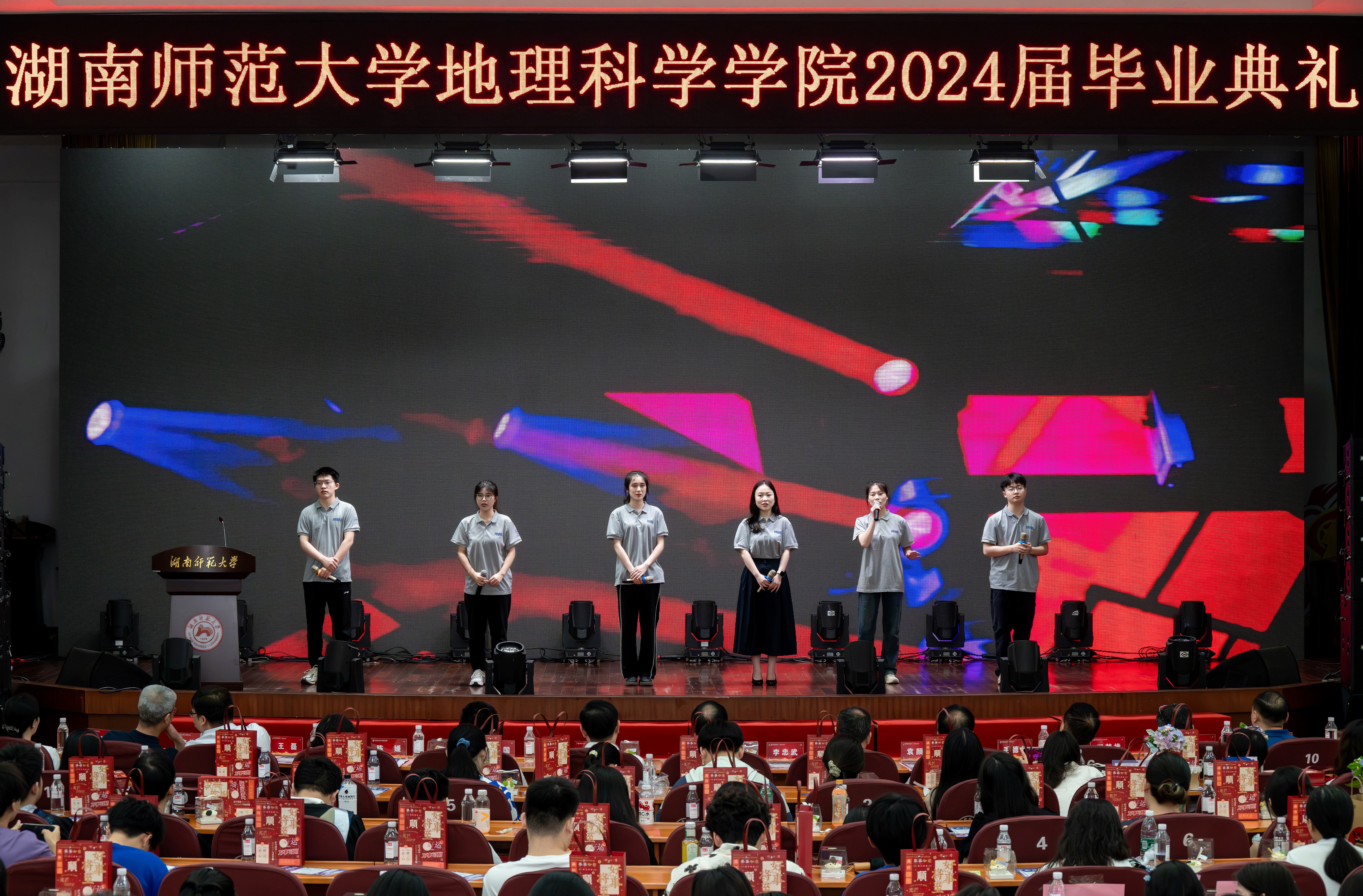 毕业典礼仪式开始之前举行了毕业生欢送会。在欢送会上学弟学妹为学长学姐们送上了《你曾是少年》歌曲以及《寻梦经纬,启航未来》的朗诵节目;本科生毕业生喻琛等同学表演了舞蹈剧《醉梦江南》、黄诗莹等同学演唱了歌曲《后来》、研究生毕业生代表们带来了歌曲《凤凰花开的路口》并送上了他们对学院、对师长、对同学们美好的祝福,最后,学工办主任郑楠带领学工办全体老师们为毕业生们献上了歌曲《再见》,以表达学院老师们对毕业生们的不舍、牵挂以及祝福之情,欢送会在大合唱中圆满落幕。欢送会结束后随即举行2024届毕业生毕业典礼。