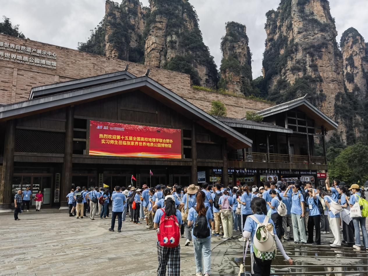 (供稿 杨波)第十五届全国高校地理学联合野外实习湖南段的第三站,也是湖南段的最后一站,来到了奇峰三千、秀水八百的张家界国家森林公园和世界地质公园。参加实习的师生先后考察了黄石寨、金鞭溪和张家界世界地质公园博物馆,并参加了专题讲座及全国首个高校地理学联合野外实习基地落户张家界的揭牌仪式。