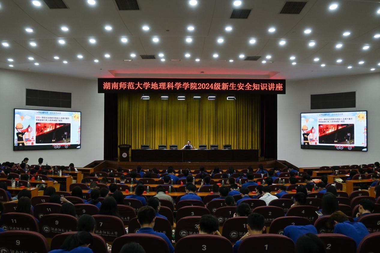 (供稿 李沅朋)为加强新生安全防范意识,保障校园活动安全有序,9月14日上午,学院在国际学术报告厅举办2024级新生安全知识讲座。讲座由长沙桔子洲派出所、湖南师范大学驻校民警陈芳桂警官主讲,学院党委副书记陈媛主持。