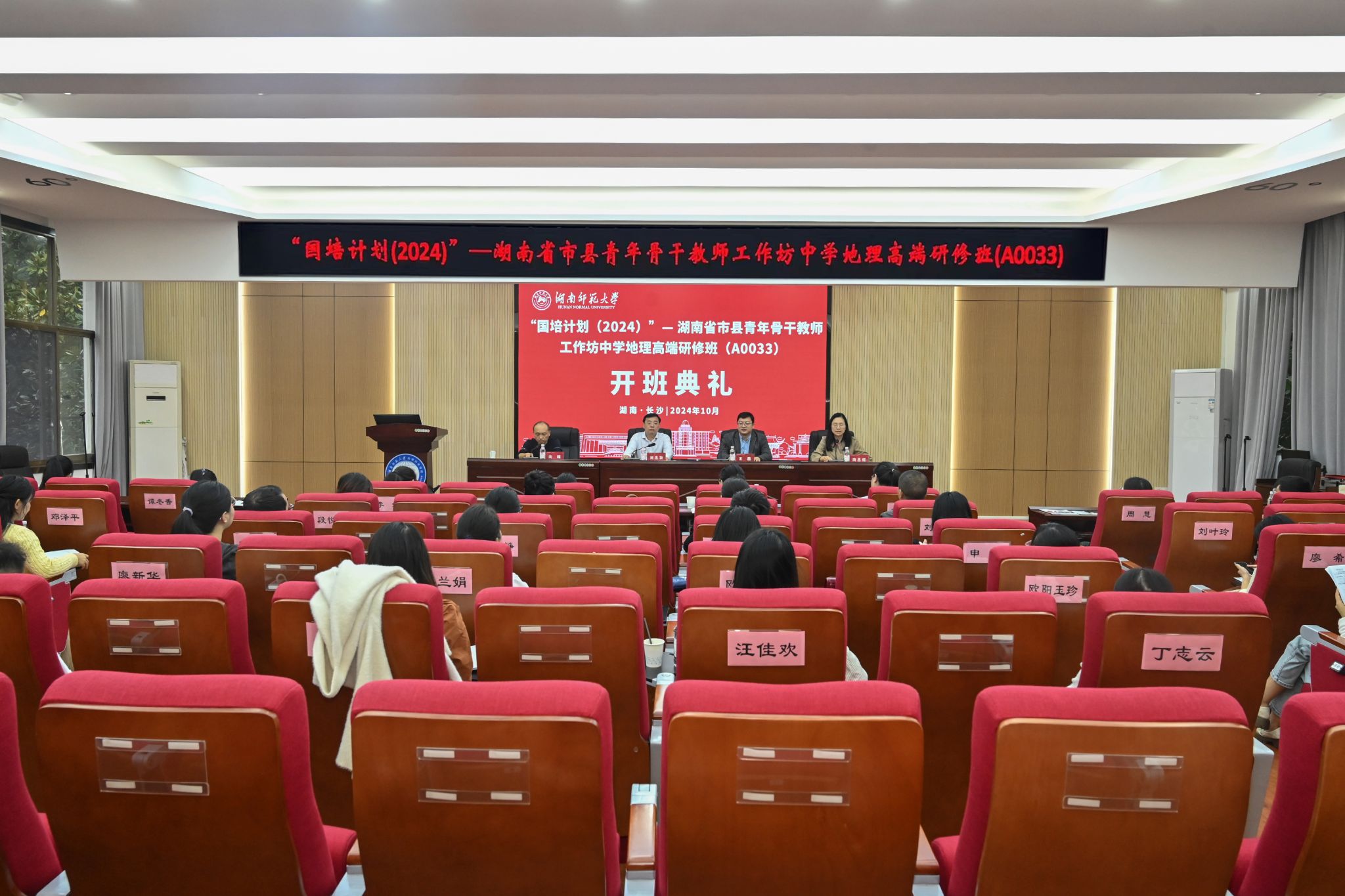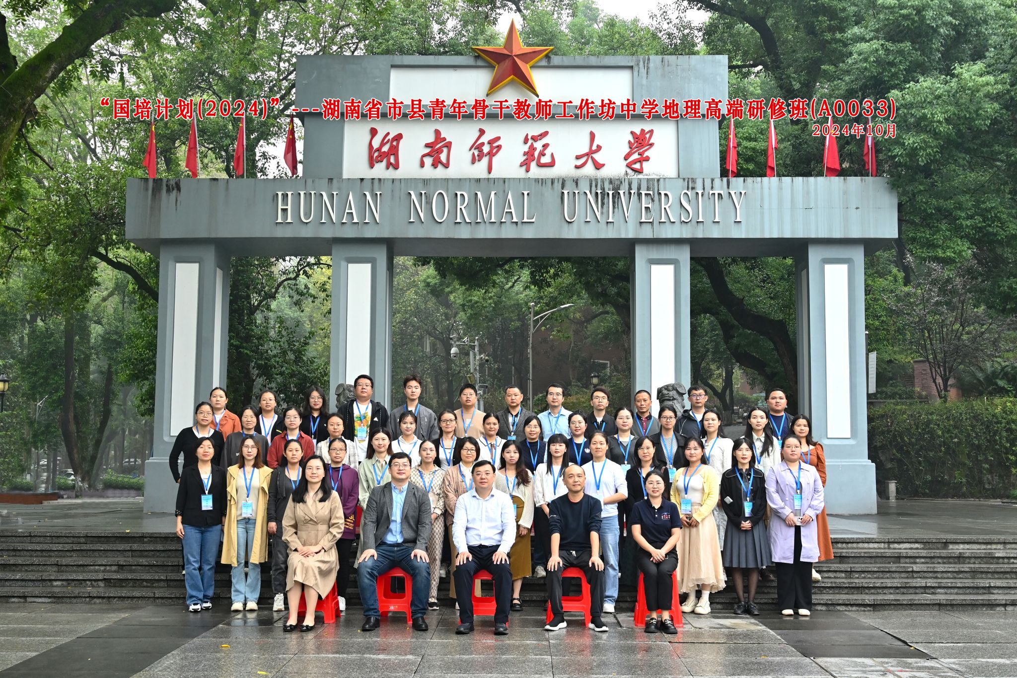 (供稿 秦雅静)10月16日,“国培计划(2024)”—湖南省市县青年骨干教师工作坊中学地理高端研修班(A0033)在365官网301报告厅举行隆重的开班典礼。365官网党委书记刘忠耿、副院长王磊、湖南师大附中科研与教师发展处副主任向超以及来自湖南省各市县的40位中学地理骨干教师出席了典礼,典礼由365官网成教办主任向思煜主持。
