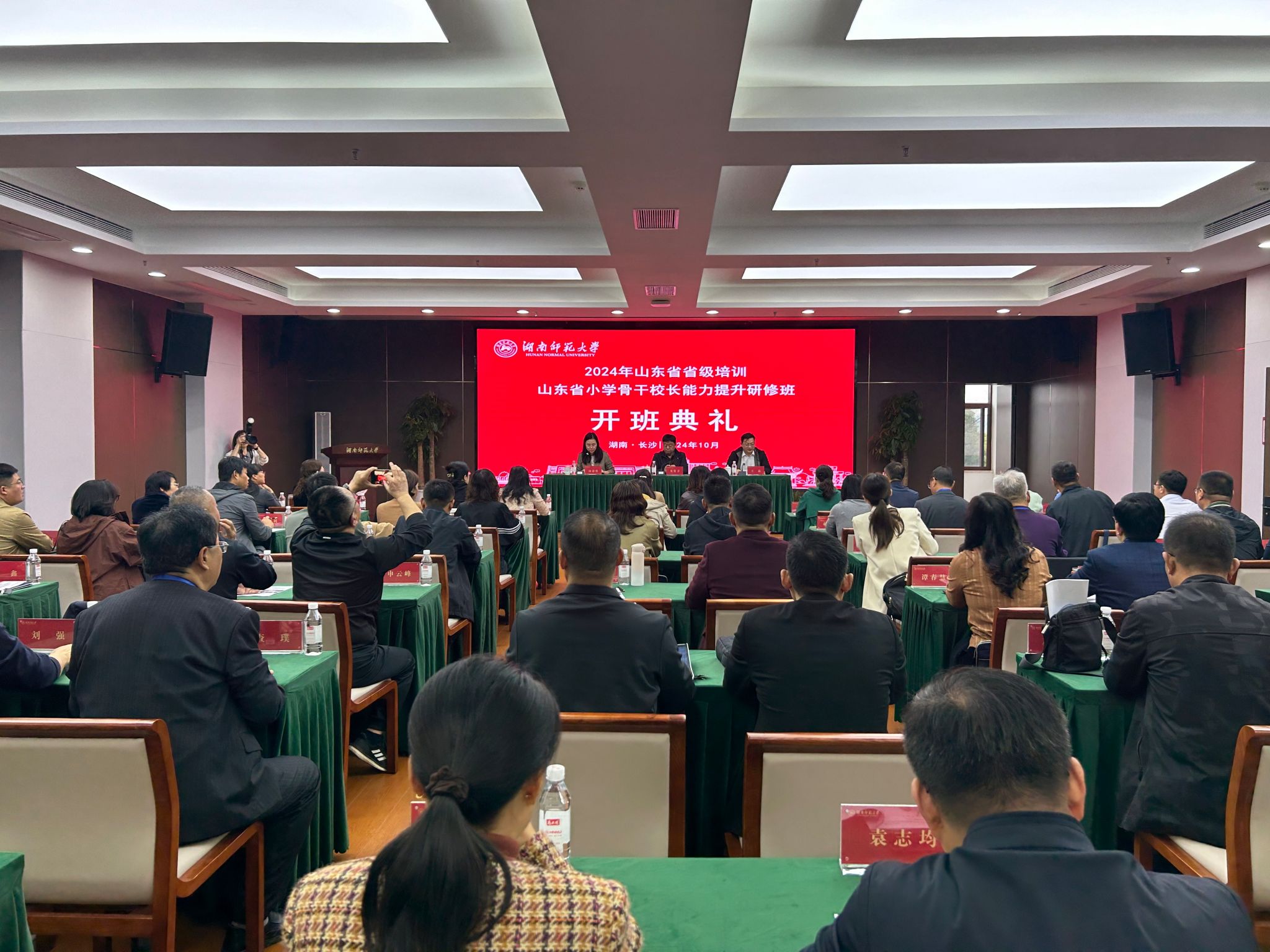 (供稿 秦雅静)10月26日,2024年山东省省级培训-山东省小学骨干校长能力提升研修班举行了隆重的开班典礼。山东省中小学师训干训中心干训部副主任季艳秋、山东省中小学师训干训中心师训部干部王丽莹、湖南省教育管理干部培训办公室副主任朱常青、365官网副院长王磊以及来自山东省的50位小学骨干校长出席了典礼,典礼由365官网成教办主任向思煜主持。