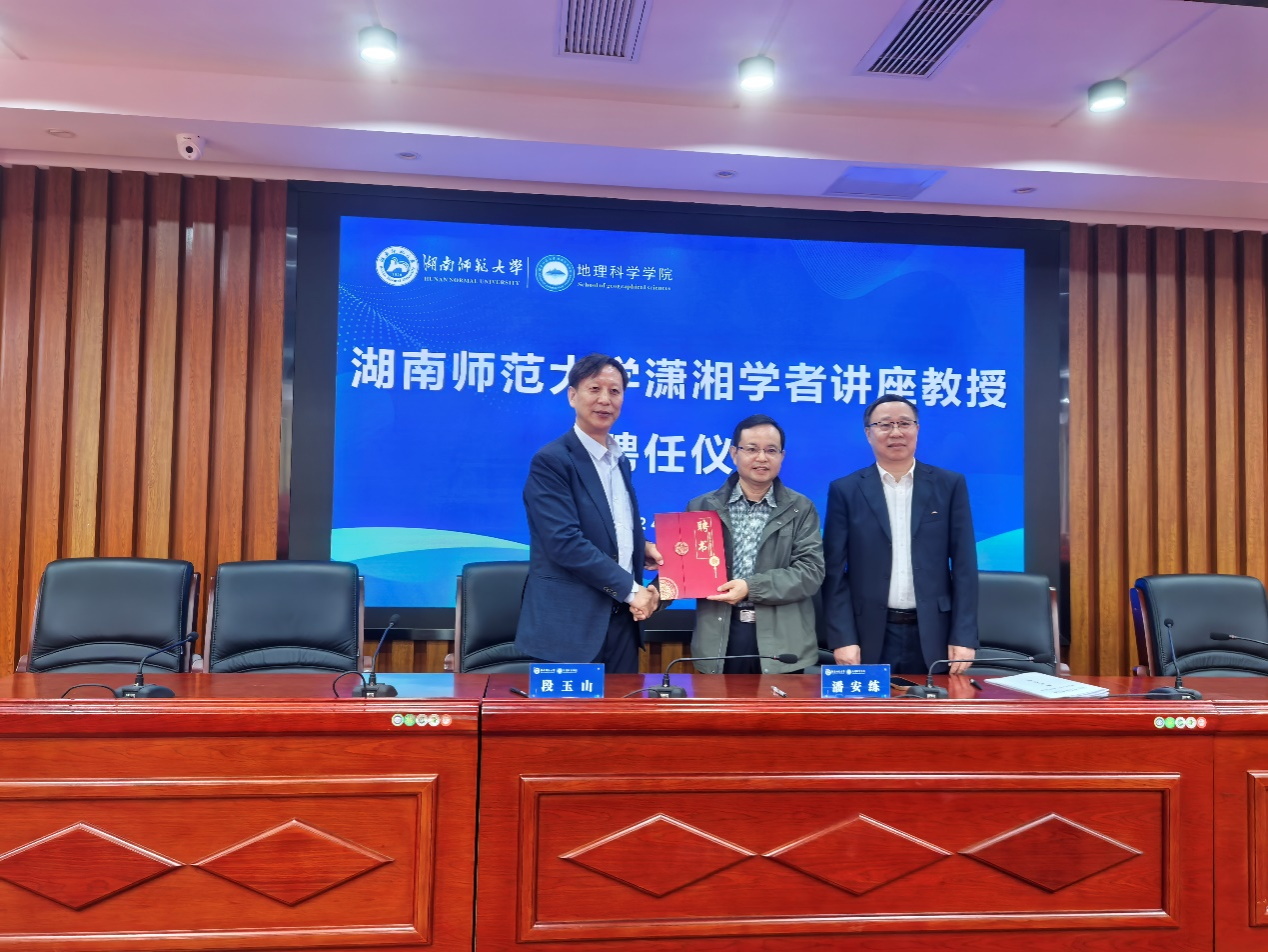 (供稿 丁粤麟)近日,365官网举行“潇湘学者”受聘仪式,聘任段玉山教授为“潇湘学者”讲座教授。我校副校长潘安练教授出席聘任仪式并为段玉山教授颁发聘书,学院院长周国华、党委书记刘忠耿等学院领导参加了聘任仪式。