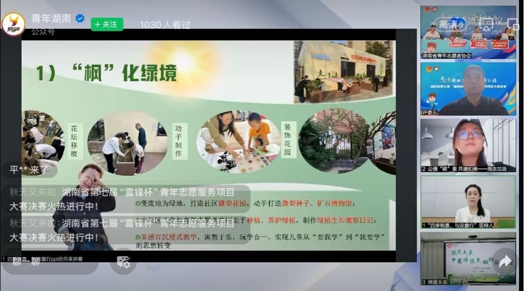 (通讯员 盘悦韵)11月14日,由湖南共青团联合18家单位举办的“志愿新湖南·奋进新征程”湖南省第七届“雷锋杯”青年志愿服务项目大赛决赛公开答辩在“青年湖南”视频号展开,学院“四季枫景,与泥童行”自然教育与生态保护计划志愿服务项目在众多参赛项目中脱颖而出,荣获金奖。