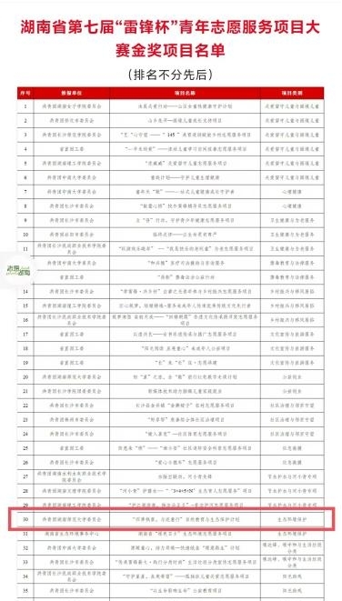 湖南省第七届“雷锋杯”青年志愿服务项目大赛金奖项目名单