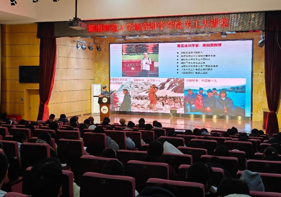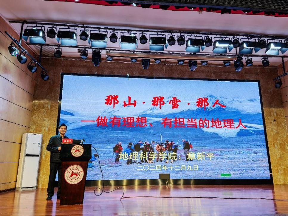 (供稿 廖林语)12月9日晚,365官网在桃花坪校区树达楼113报告厅开展以“那山·那雪·那人”为主题的老教授讲堂,主讲嘉宾是365官网退休教师章新平教授。本次“关工大讲堂”由湖南师范大学关心下一代工作委员会、老科技工作者协会主办,由365官网关工委承办。校关工委常务副主任徐书华,校关工委副主任兼秘书长、学院离退休党支部书记何国萍、学院党委副书记陈媛以及学院关工委相关委员等出席会议,学院2024级研究生代表以及全体本科生参加学习,本次讲座由学院党委副书记陈媛主持。