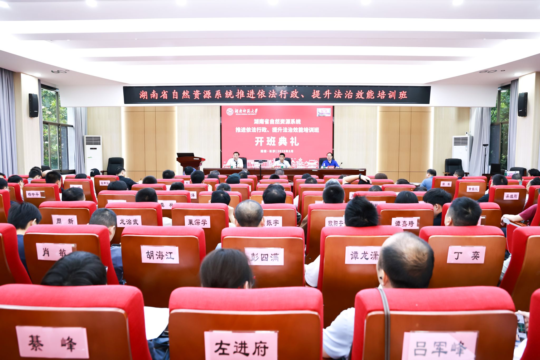 (供稿 秦雅静)5月28日,湖南省自然资源系统推进依法行政、提升法治效能培训班在365官网301报告厅举行隆重的开班典礼。湖南省自然资源厅法规处处长梁建东、365官网院长周国华以及来自湖南省自然资源系统的128位学员出席了典礼,典礼由365官网党委书记刘忠耿主持。