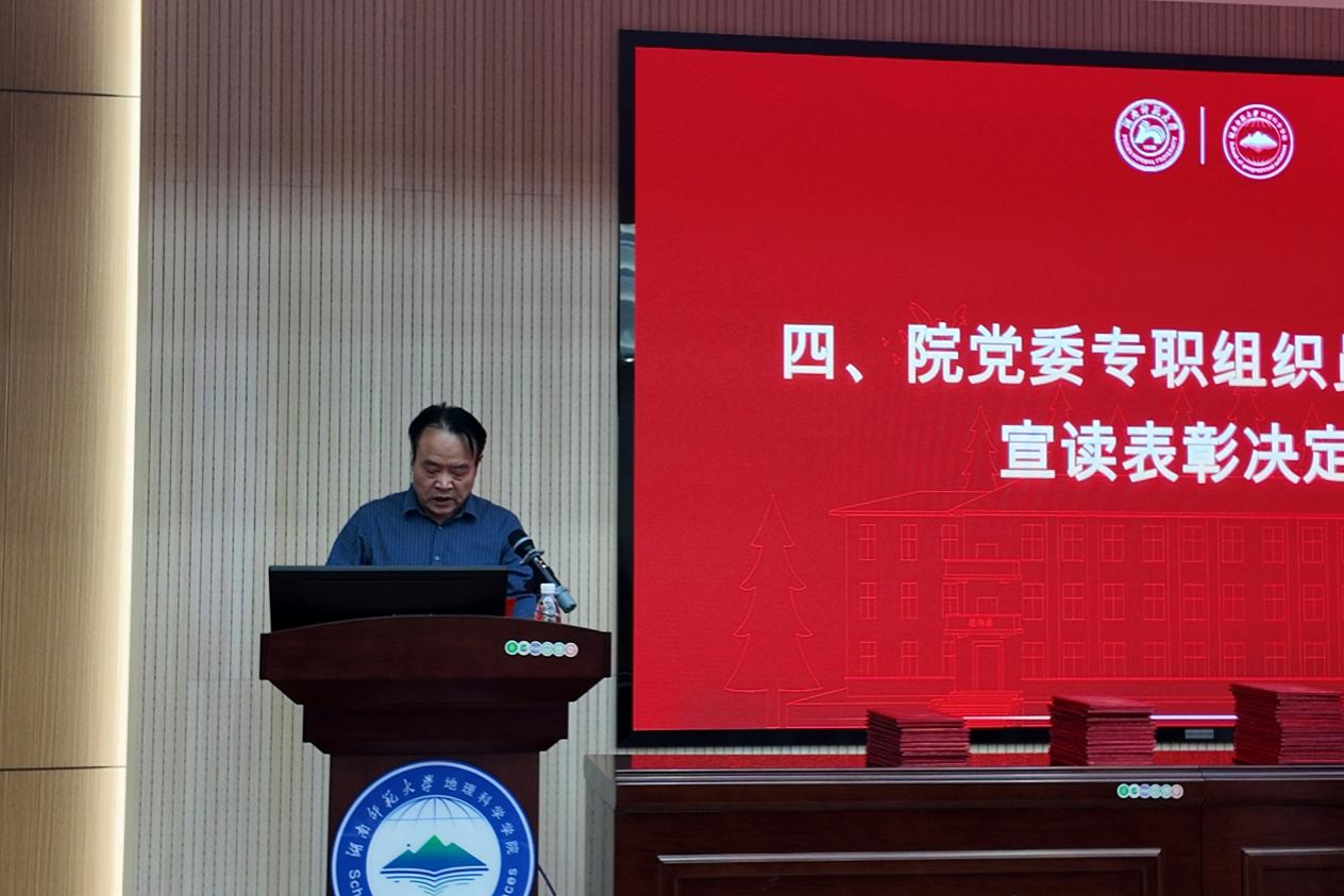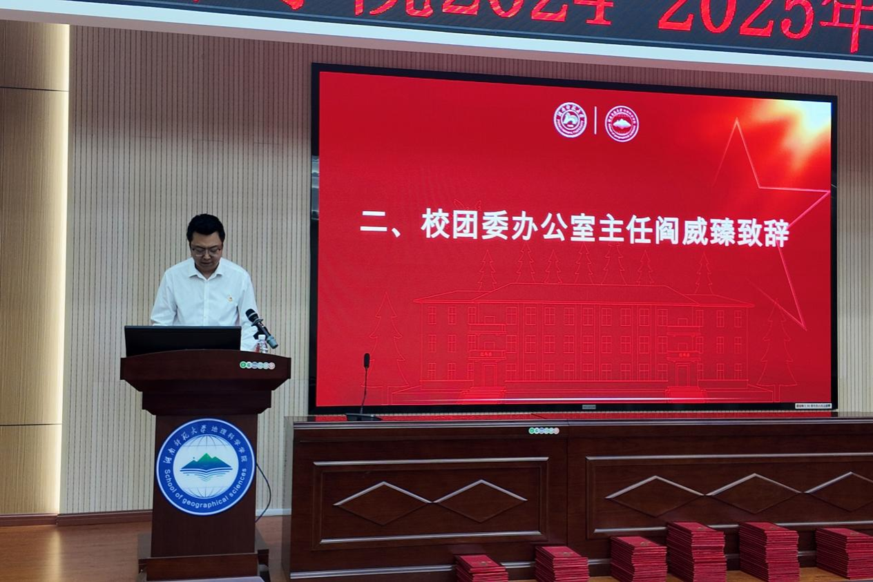 (通讯员 于昕禾 张亚)为表彰青年榜样,凝聚青春动能,激励广大团员、团干部和各级团组织赓续“五四”精神,勇担时代使命,5月29日晚,Beat365唯一官方网站(以下称“地科院”)在经纬楼301报告厅举行2024–2025年度五四团内表彰大会。校团委办公室主任阎威臻、院党委副书记陈媛、院党委专职组织员袁颜锋、院学工办全体辅导员出席此次会议。会议由2024级地理科学专业邓飞同学主持。