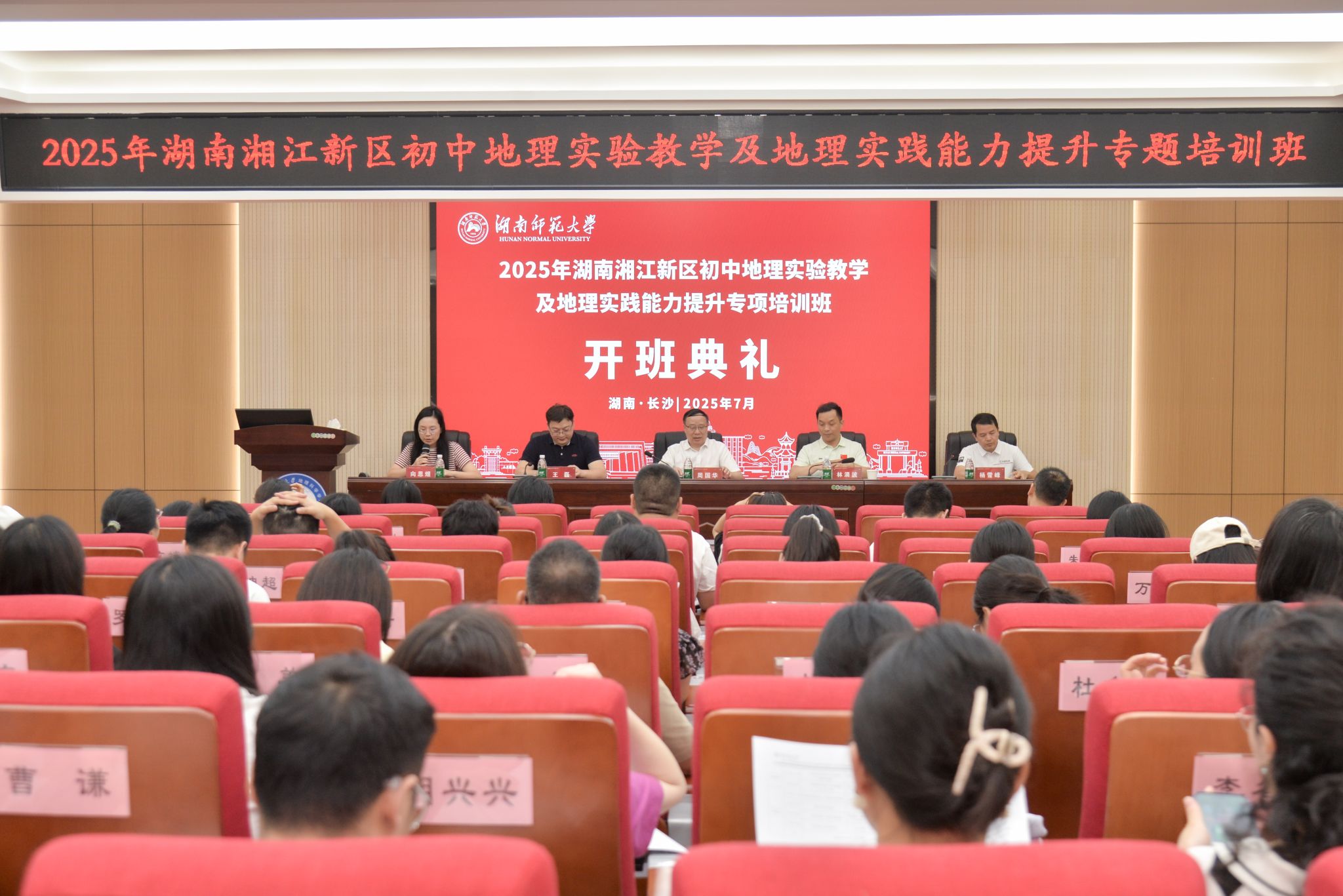 (供稿 秦雅静)7月7日,2025年湖南湘江新区初中地理实验教学及地理实践能力提升专项培训班在365官网301报告厅举行隆重的开班典礼。湖南湘江新区教师发展中心书记、主任林涌波、地理教研员、师训室主任杨雪峰,365官网院长周国华、副院长王磊以及来自湘江新区的80位优秀的初中地理教研组长及骨干教师出席了典礼,典礼由365官网成教办主任向思煜主持。