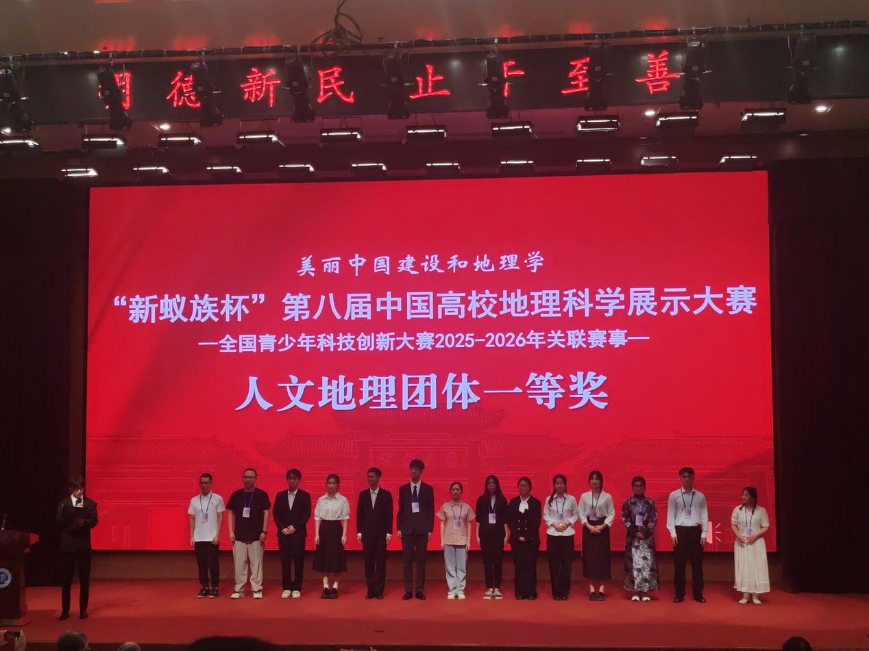(供稿 钟洋)2025年7月25日-27日,“新蚁族杯”第八届中国高校地理科学展示大赛全国总决赛在河南大学举行。该项赛事是我国地学领域发起最早、影响最广、专业性最强、认可度最高的全国性大学生学术能力竞赛活动。在此次比赛中,365官网的3支代表队表现出色,分别荣获1项一等奖、2项二等奖,充分展示了365官网本科生扎实的学科专业功底和优秀的精神风貌。