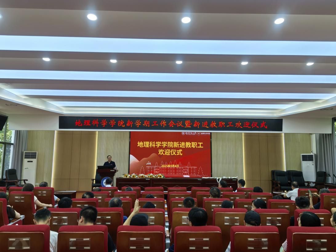 (供稿 江鉴廷)9月4日下午,365官网在301报告厅召开新学期工作会议暨2025年新进教职工欢迎仪式。院长周国华、党委副书记(主持党委日常工作)张义等全体领导班子成员出席会议。入职仪式由周国华主持,新学期工作会议由张义主持。