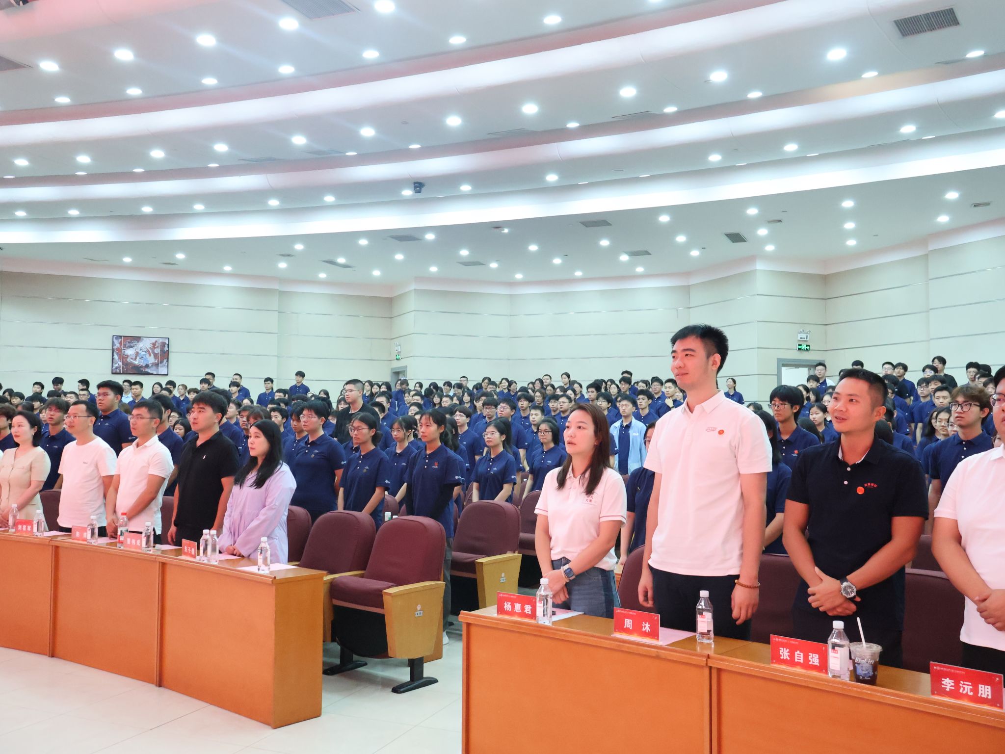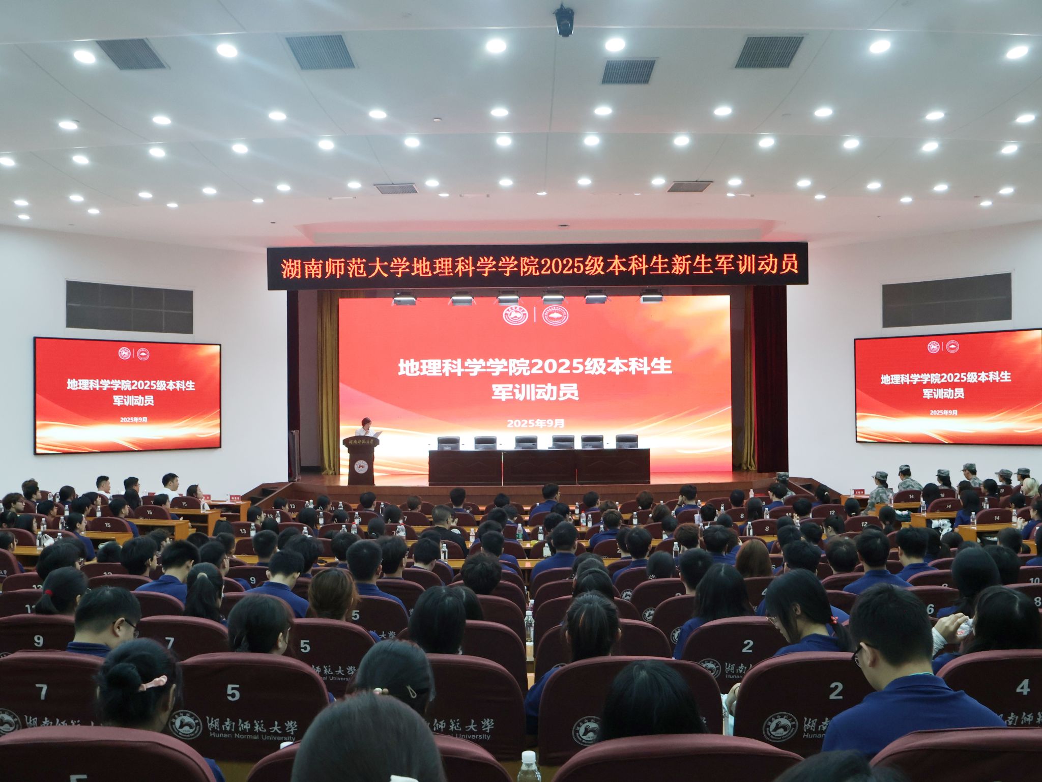 (通讯员 于昕禾)2025年9月15日上午,Beat365唯一官方网站2025级本科生新生迎新典礼在国际学术报告厅举行。院长周国华、党委副书记张义(主持党委日常工作)、科研副院长饶志国、教学副院长李忠武、党委专职组织员袁颜峰、各系系主任、班导师及学工办全体辅导员成员、2025级新生军训教官以及2025级全体本科新生参加。迎新典礼由院党委副书记陈媛主持。