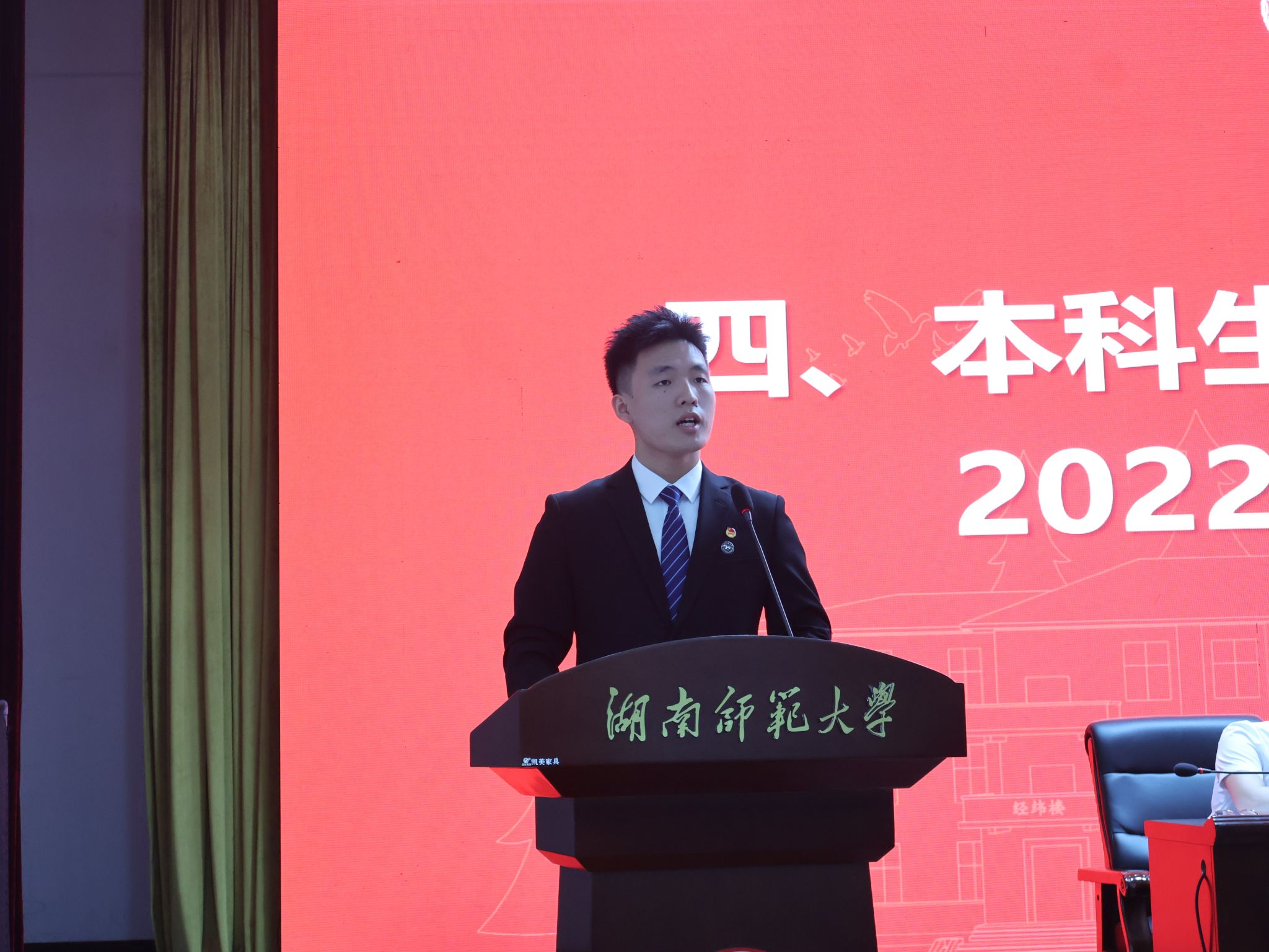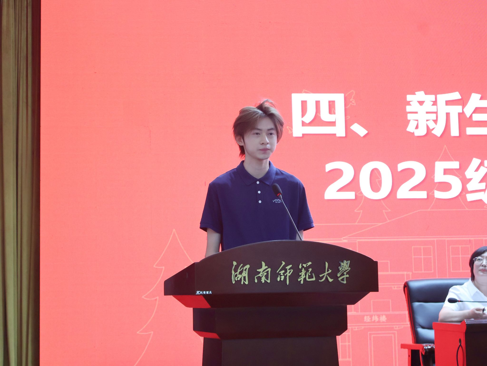 老生代表2022级地理科学专业李鑫同学从自身经历出发,鼓励学弟学妹们听从内心,无惧选择,最终定义属于自己的、独一无二的黄金四年。新生代表2025级地理科学专业骆柯睿发言,表达了对大学生活的期待和向往,也表达了日后会更加努力,成为有担当的地理青年。