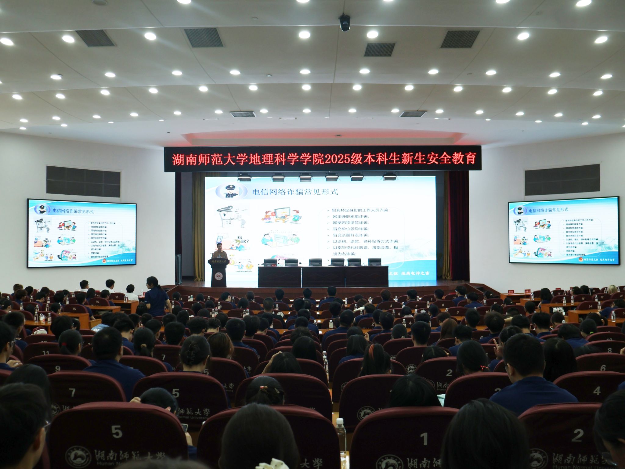 迎新典礼结束后。学院开展了军训动员,并邀请了保卫处吴宏卫为新生开展安全只是教育讲座,同时邀请了365官网教学副院长李忠武教授为365官网新生开展以“地理学视角下洞庭湖碳循环密码”为主题的开学第一课,讲座现场气氛活跃,新生们纷纷表示加强了对地理学科的认识,受益匪浅。