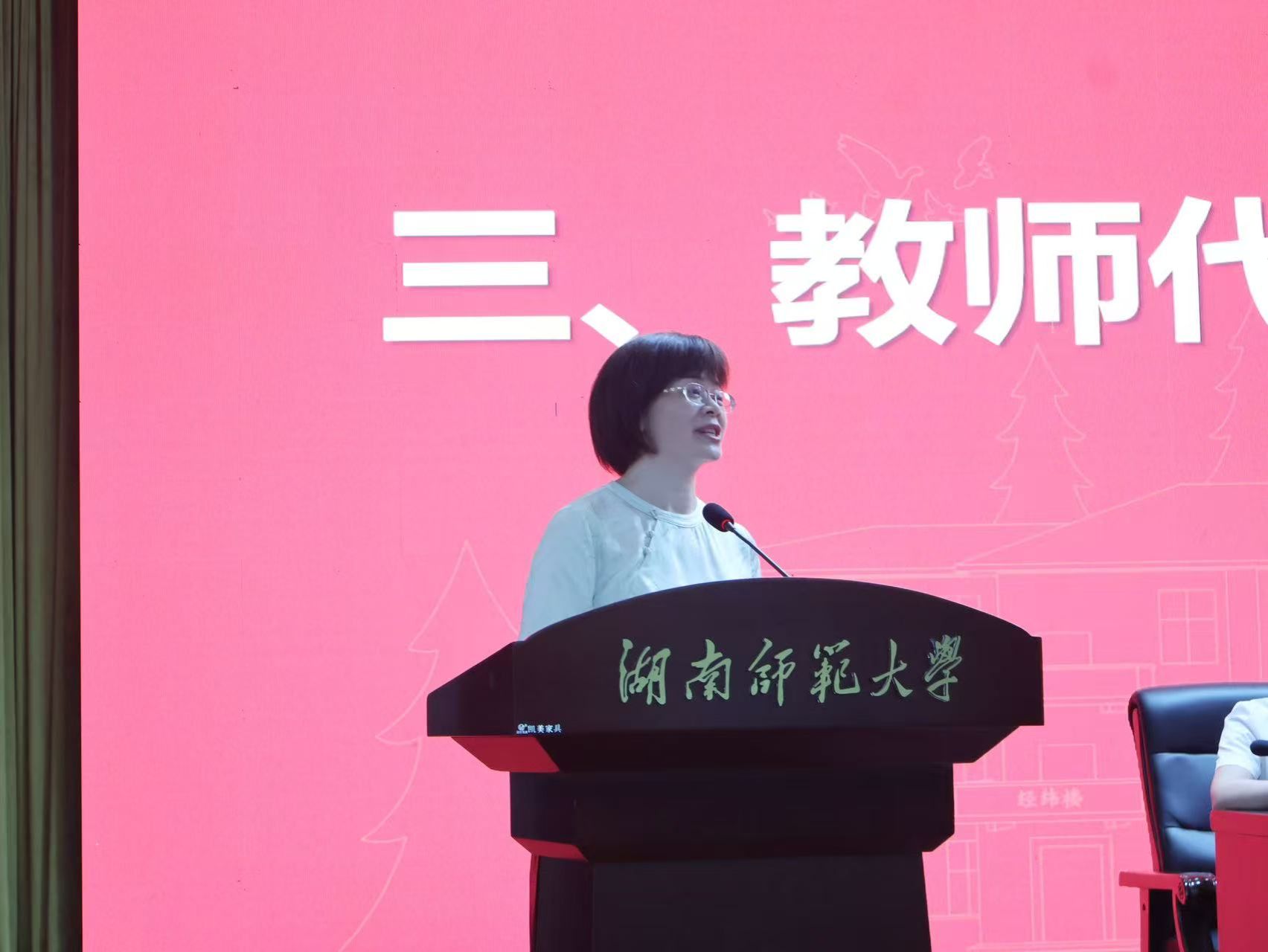 土地科学系系主任谭雪兰教授作为教师代表发言,她首先对新生表示热烈的欢迎,强调了地理学学子的使命担当,并为同学们提出了很好的学习建议,祝愿全体新生在未来四年收获知识与能力,成长为有理想、有本领、有担当的新时代“地理学”和“土管”青年。