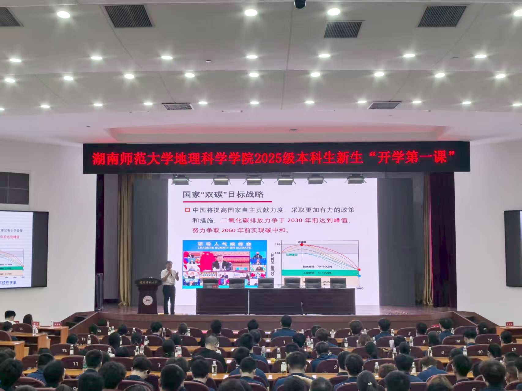 首先是院长周国华教授致辞,周院长以“养成地理学思维,做一个优秀的地理人”为主题,从 “要素关联与全局观念”等四个维度讲解什么是地理学思维,以“夯实基础,构建跨学科知识体系”等四个角度引导学生如何养成地理学思维,周国华院长讲话饱含着对2025级新生的期许与祝福,期望大家以地理之眼观万象,以综合之思解纷繁,以坚韧之志践使命,在岳麓山下书写既属于时代又属于自己的青春篇章。