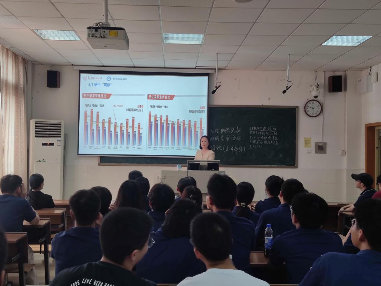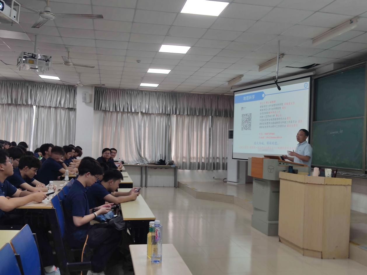 李忠武着重向地理科学专业的同学们介绍了本专业的教学体系与师资力量,带领同学们明确了学习目标,并在与学生的互动中鼓励学生们积极创新。