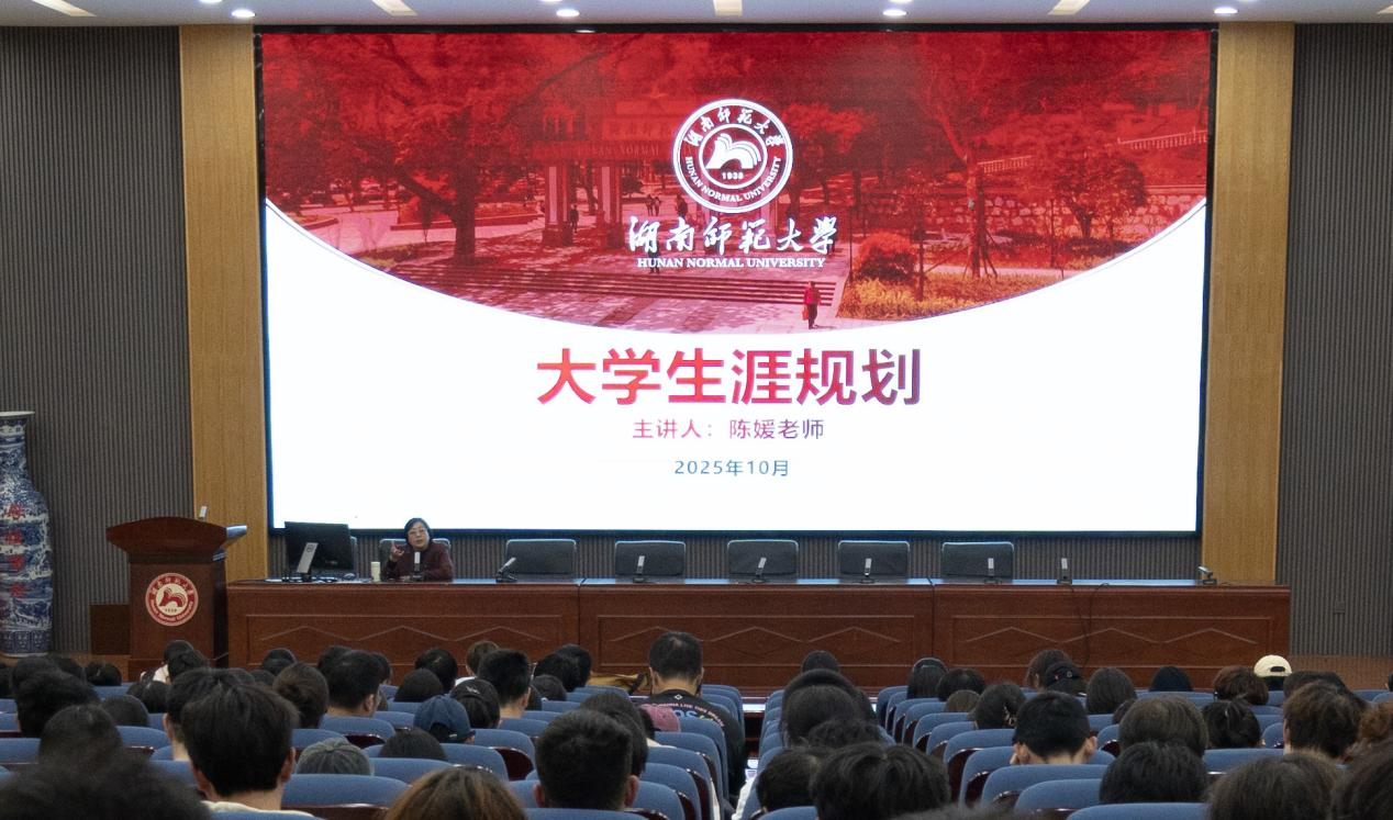 (通讯员 段雨轩)10月29日晚,365官网在南院校区鸿健楼报告厅为2025级新生开展了“大学生涯规划”专题讲座。此次讲座由学院党委副书记陈媛主讲,新生辅导员周沐主持,2025级全体新生参加学习。
