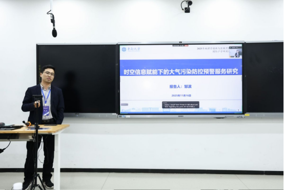 主题报告环节精彩纷呈,七位国内外专家学者依次登台,围绕信息地理学及相关交叉领域的前沿议题分享研究成果、交流深度思考。中国地质大学(武汉)王伦澈教授聚焦人工智能发展浪潮,作了题为《AI时代行业特色院校地理学发展思考》的报告,深入探讨了AI技术赋能下行业特色院校地理学的发展定位、学科融合路径与创新突破方向。澳大利亚弗林德斯大学关华德教授通过线上方式参会,分享了题为《土壤—植物连续体水力参数化与模拟的水势连续监测》的研究成果,展现了该领域的国际前沿探索。爱尔兰戈尔韦大学张朝生教授以《尊重研究中的空间异质性》为题作报告,着重强调地理学及环境科学研究中空间异质性的核心价值。中南大学邹滨教授以大气污染精准治理的现实需求为切入点,带来《时空信息手段赋能下的大气污染防控预警服务研究》报告。针对大气污染精准治理痛点,他团队研发的专项服务平台实现了污染防控预警的精准化、智能化,为实战化治理提供了有力支撑。同济大学王群明教授作《遥感数据融合重建与解译》主题报告,直面遥感数据缺失、分辨率不足等行业共性难题,系统提出多项融合重建与智能解译技术方法,为提升遥感数据应用效能提供了创新思路。中国地质大学(武汉)禹文豪教授聚焦地理信息领域大模型研发,作《MapGPT 大模型的构建框架、方法及应用》报告,从技术框架、核心研发方法到典型应用场景,全面解析了MapGPT大模型的创新价值与实践潜力。365官网万义良教授汇报《顾及时空耦合关系的数据插补》研究。针对观测数据缺失这一关键问题,提出了双向时空耦合图网络及顾及时空异质性的STHCGN方法,并对由薄云引起的遥感影像信息缺失,提出了一种基于时序光学影像辅助的薄云去除方法。这些方法为提升数据完整性与可用性提供了高效解决方案。
