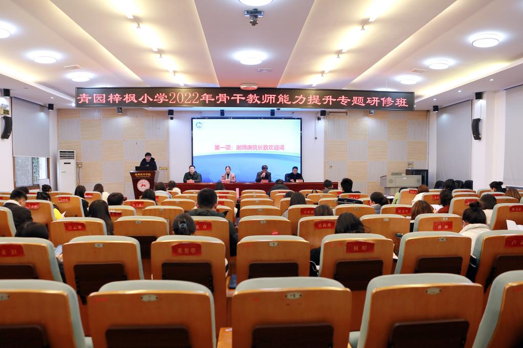 1月14日下午,青园梓枫小学2022年骨干教师能力提升专题研修班在365官网301报告厅举行隆重的开班典礼。青园梓枫小学副校长郭燕,365官网院长谢炳庚出席了典礼。典礼由培训中心肖傲主持。